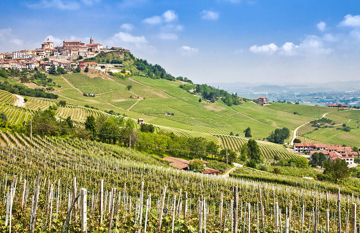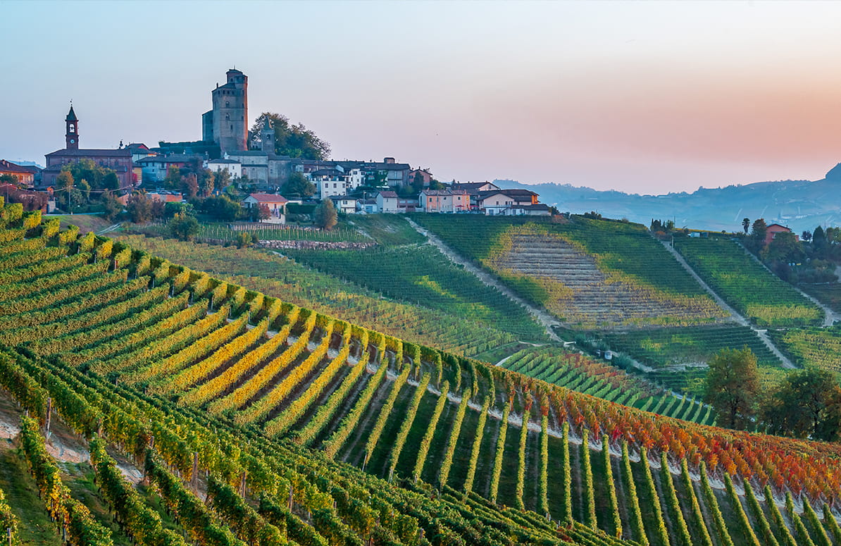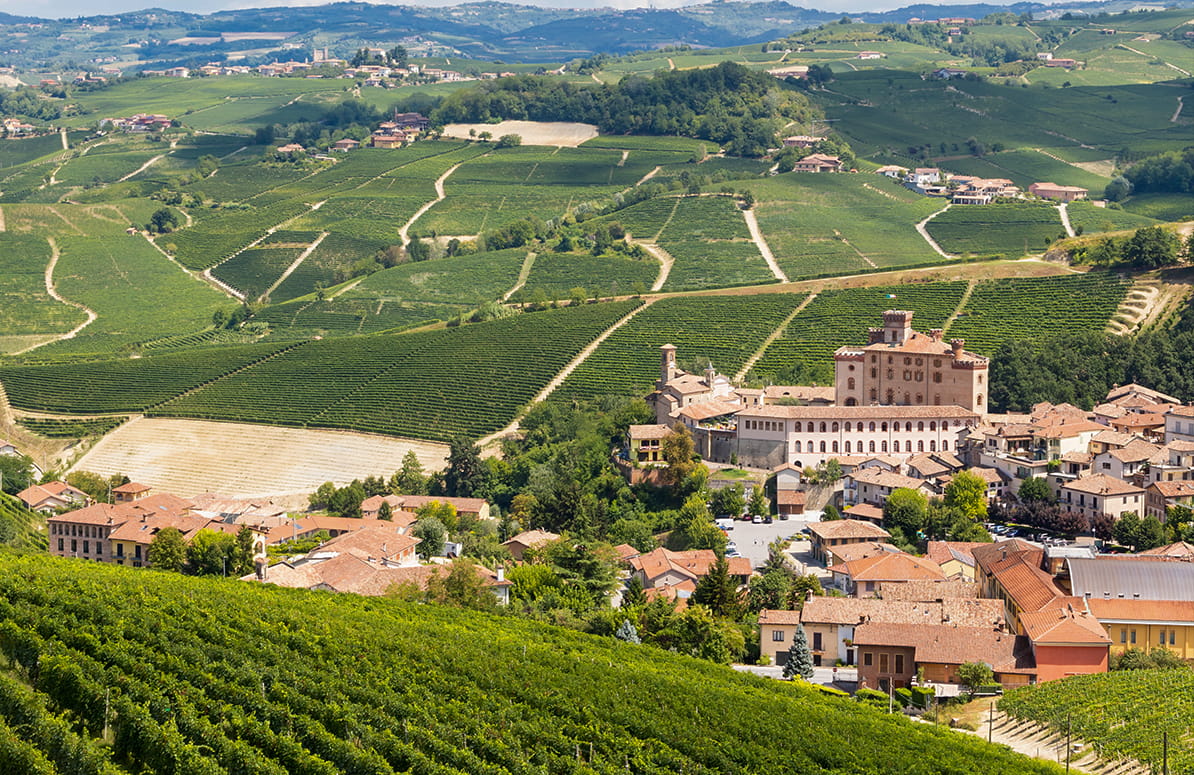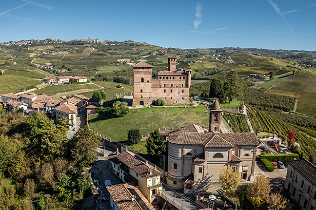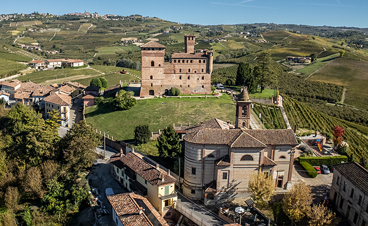 Ai piedi del castello, immersi nelle Langhe: un panorama che accoglie lo sguardo e nutre lo spirito